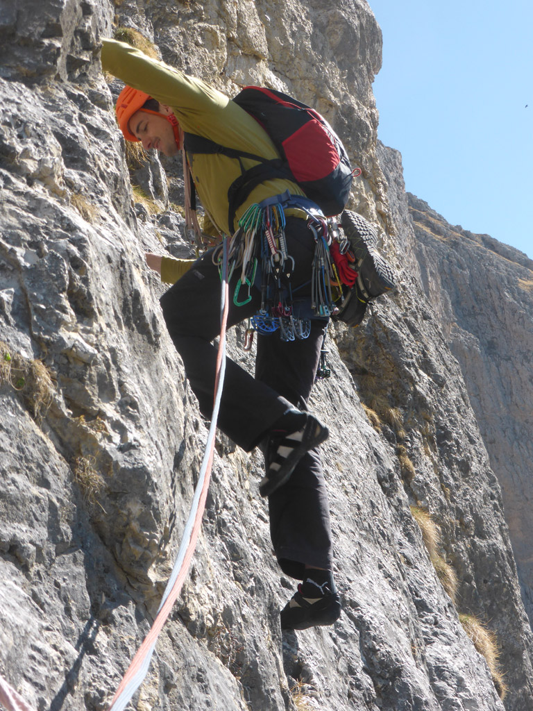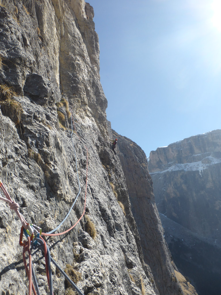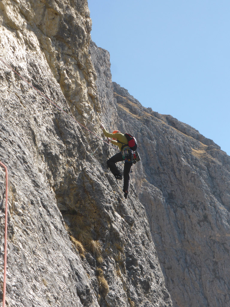 Über diesen Klassiker braucht man eigentlich nicht viel schreiben, außer, dass wir drei jede Menge Spaß hatten und dank mehrerer zusammengehängter Seillänge recht schnell am Gamsband standen.