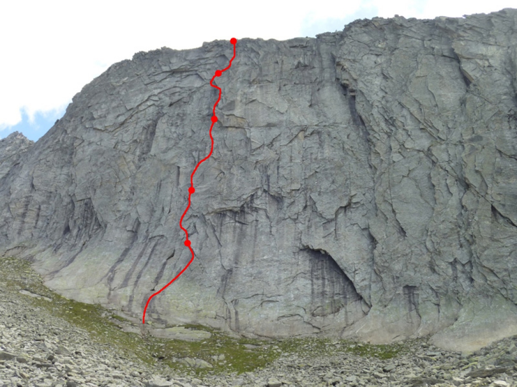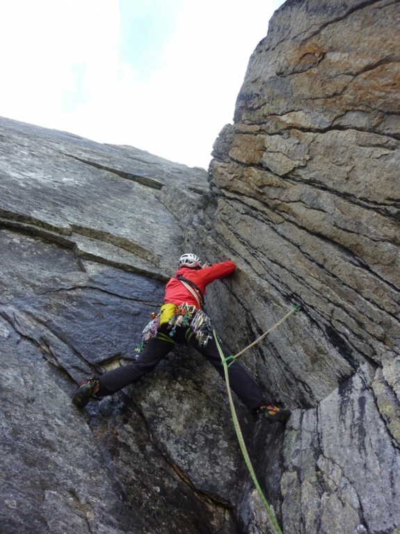 In der gesamten Route stecken nur 2 Normalhaken, 3 Seilschlingen und ein Friend, der nicht mehr zu retten war… Dementsprechend sind genügend mobile Sicherungsmittel mitzubringen!