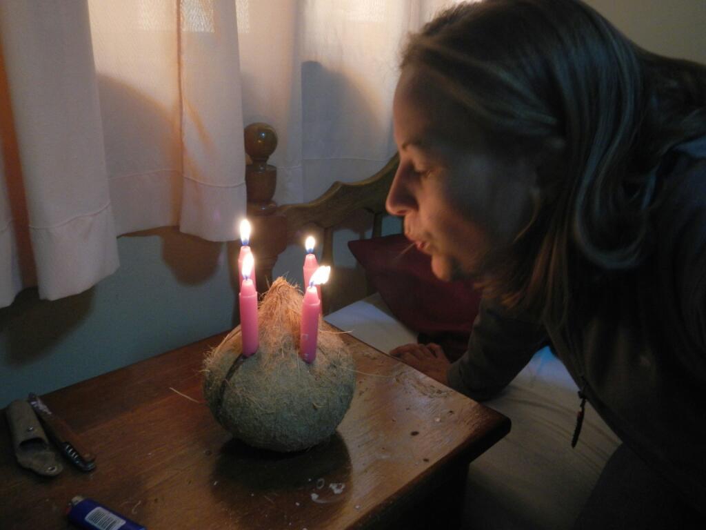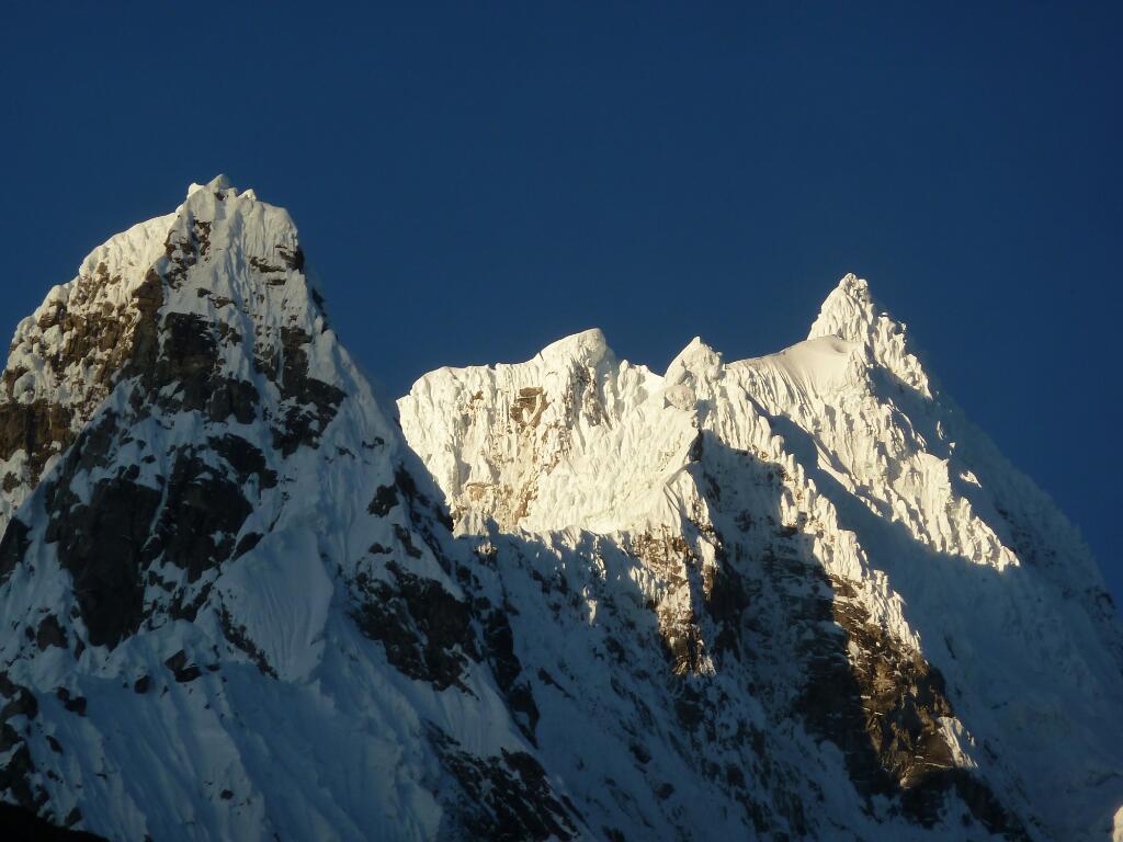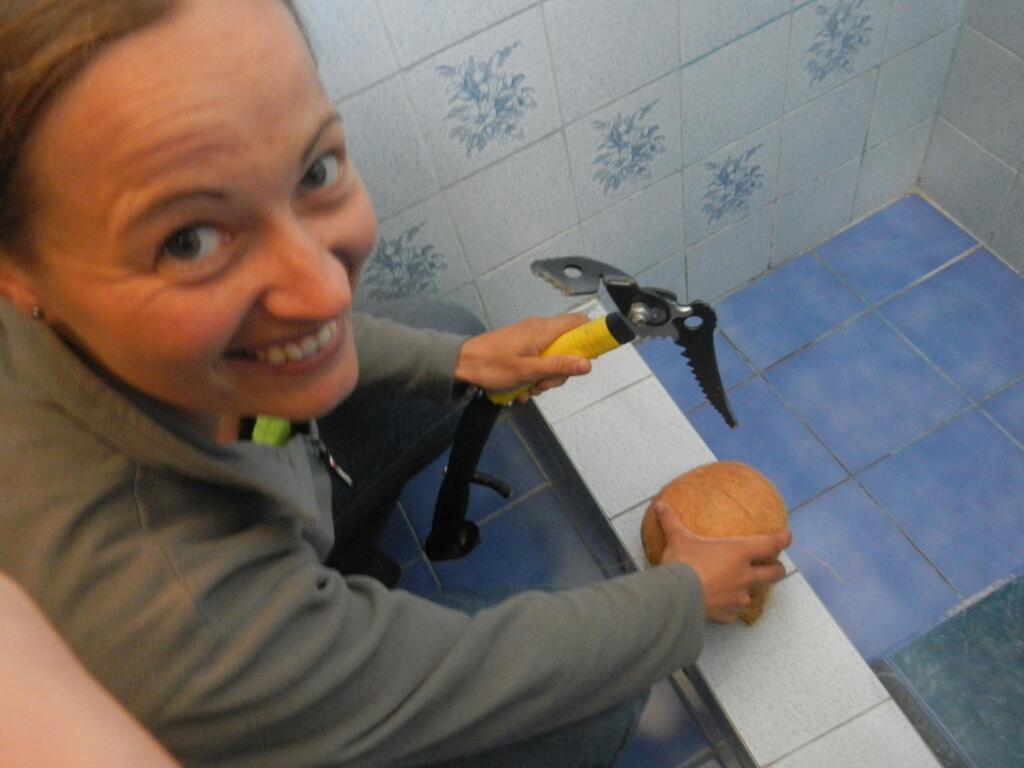 Uns gelang die Flucht aus dem Moloch Lima und nach achtststündiger, recht angenehmer Busfahrt, bei der man von Meereshöhe über einen 4100 m hohen Pass rollt, erreichten wir die Bergsteigerstadt Huaraz. Am Sonntag stand die Organisation unseres nächsten Bergabenteuers auf dem Programm. Da wir morgen Richtund Quebrada Llaca aufbrechen werden feierten wir schon heute Claudias Geburtstag. Da die am Markt angebotenen Torten nicht gerade appetitlich aussahen gabs eine „Geburtstagskokosnuss“. Diese musste natürlich erst geknackt werden und was bietet sich da besser an als die mitgebrachten Steileisgeräte. Training für die kommenden Eiswände, sozusagen… Wie gesagt: Morgen gehts ab in die Berge, wobei wir bis Freitag oberhalb von Huaraz Sportklettern und den 5670 m hohen Vallanaraju besteigen wollen.