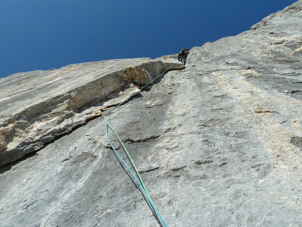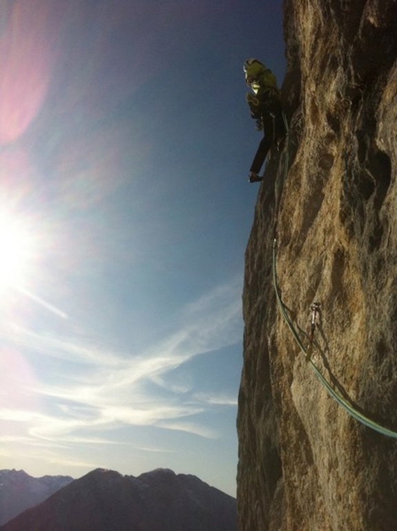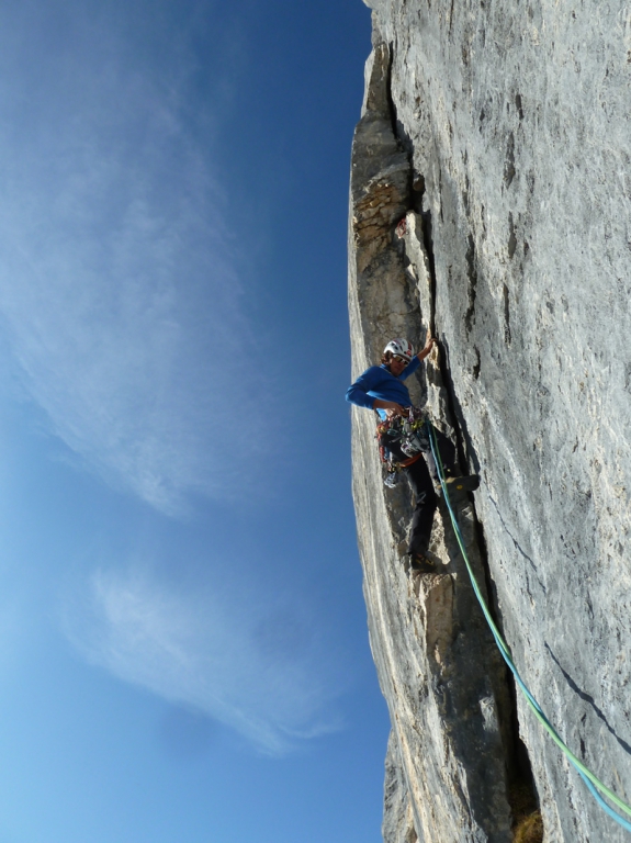 Bis auf die ersten 2-3 Meter besagter 8er Länge in der uns vor Allem die Tritte fehlten konnten Benni und ich alles in Wechselführung onsighten. Um die Tour abzurunden stiegen wir über die „Südost“ weiter auf den Westgrat.