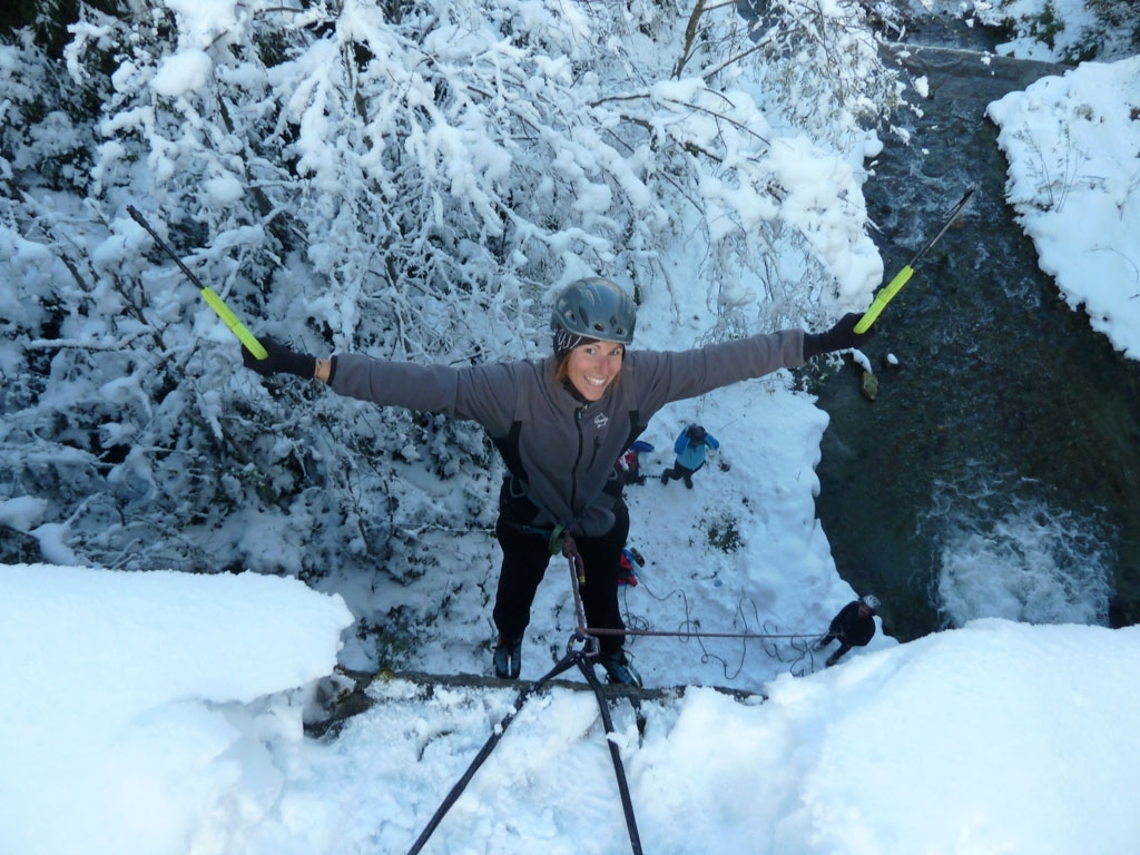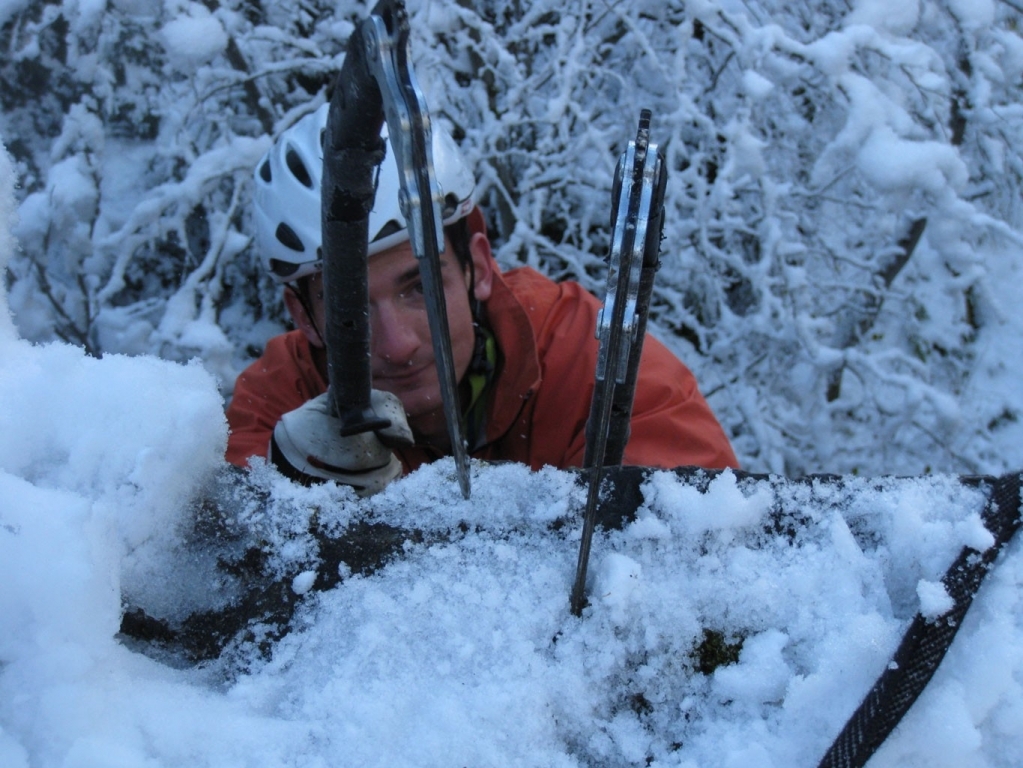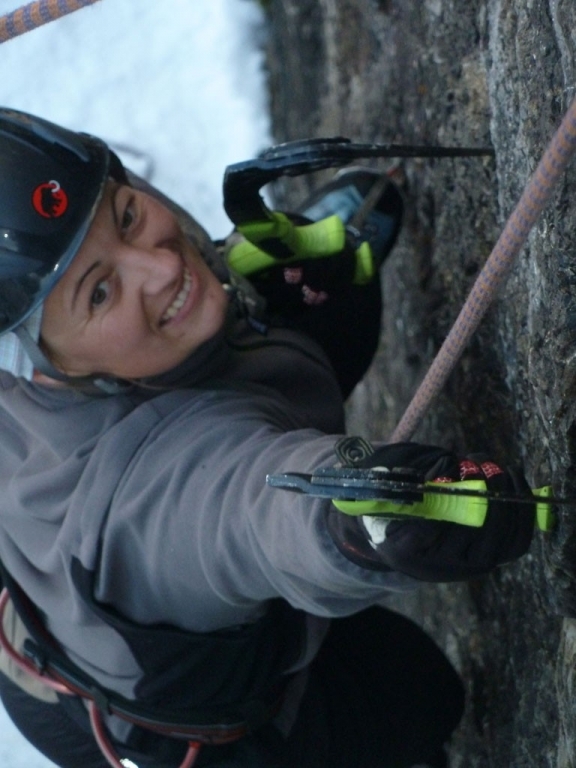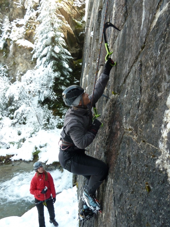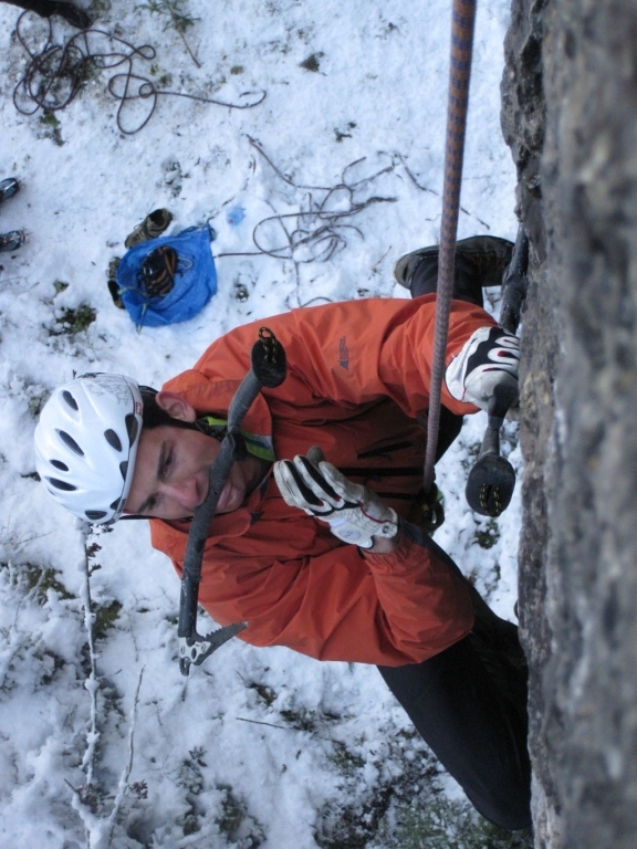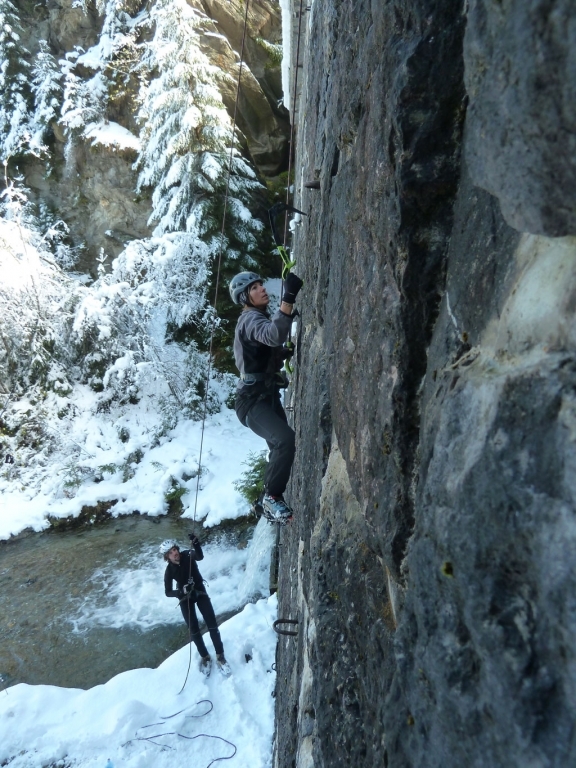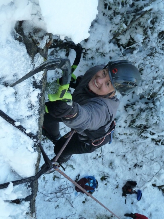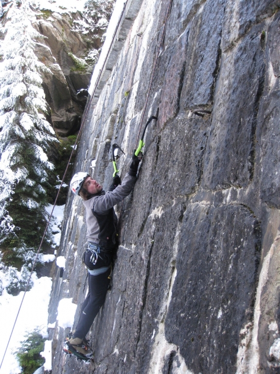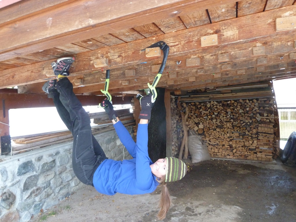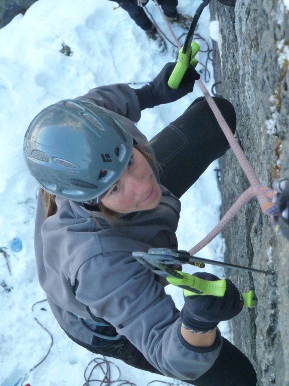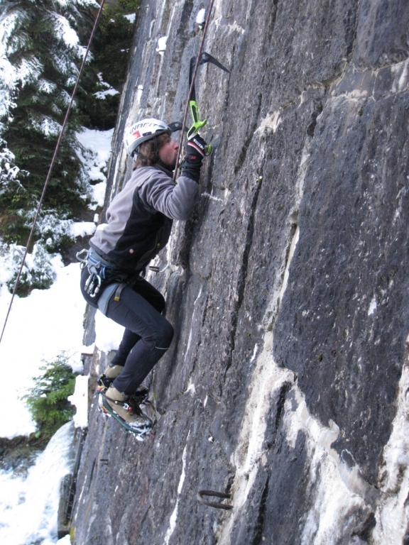 Eva, Claudia, Josy und ich schwammen heute etwas gegen den Strom der restlichen Wintersportler und gingen nicht skifahren. Stattdessen gab’s zum Auftakt des heurigen Eis- und Mixedklettersemesters eine erste Lektion im Prüfungsfach Drytooling.