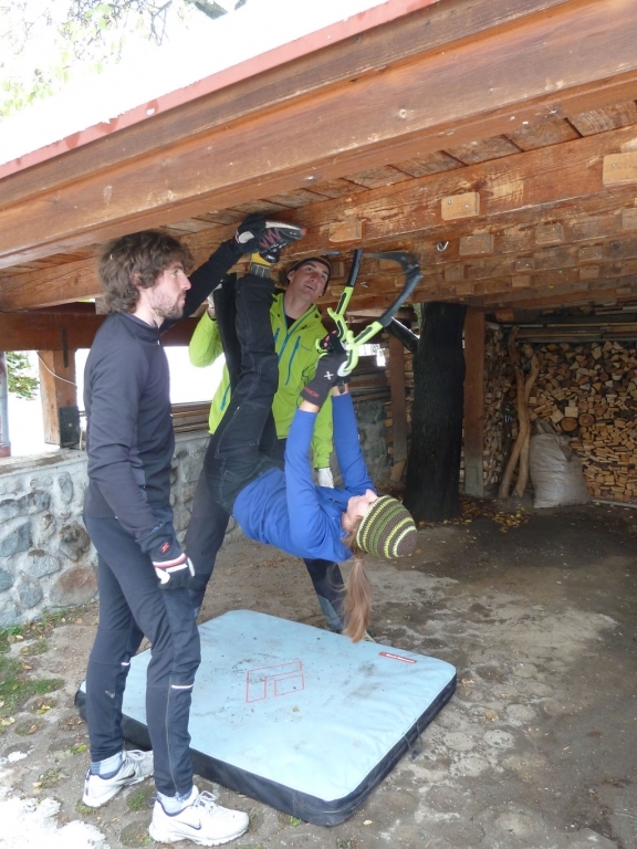 Nach einem einführenden Seminar in der heimischen Garage ging’s dann weiter zur Geschiebesperre um die erste Klausur abzulegen. Die winzigen Hooks wollen wie rohe Eier behandelt werden, ansonsten läuft man schneller als man glaubt Gefahr (durchzu)fallen. Diverse Eisenklammern und Klussen zeigten die beeindruckenden Einsatzmöglichkeiten der Eisbeile auf , was sich natürlich positiv auf die Endnote auswirkte.