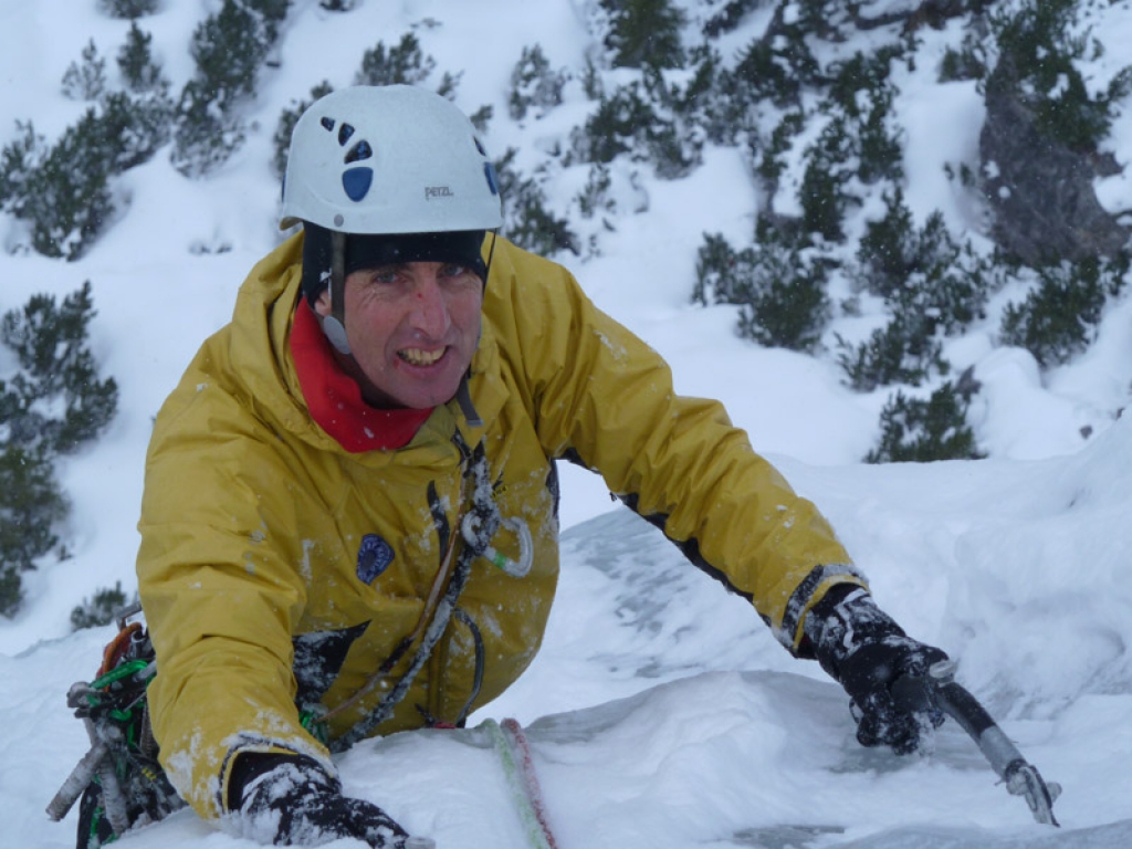 Perfekt aufgewärmt ging es dann weiter in Richtung Magier (WI 5/5+). Die Eissäule am Beginn der ersten Seillänge berührt recht solide den Boden, was einem den M7 Felskontakt ersparte. Der alte Profilhaken im Riss hinter der Säule sorgte für ein geborgenes Gefühl und auch die Eisqualität mit zahlreichen Hooks und Tritten beschleunigte das Vorwärtskommen. In der zweiten Seillänge erwartet einen etwas Röhreneis, aber dennoch finden sich meist gute Möglichkeiten solide Schrauben zu setzen.